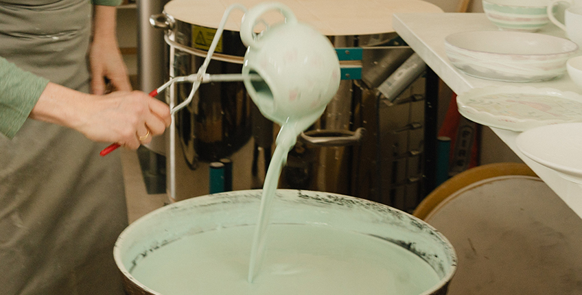Wir sind eine Werkstatt zum Anfassen. Vom ersten Pinselstrich bis zum fertigen Objekt kannst Du bei uns jeden Arbeitsschritt verfolgen. Nach dem Bemalen werden die Keramiken erst zum Trocknen aufgestellt. Dann tauchen wir jedes Teil in ein Glasurbad, das für den schönen Glanz beim fertigen Stück sorgt. Schließlich werden die Kreationen 24 – 40 Stunden lang im Ofen gebrannt. Schaut uns gerne auf die Finger. Wir brennen für das, was wir tun: mit 1000 Grad Hitze und mit 100 Prozent Freude.