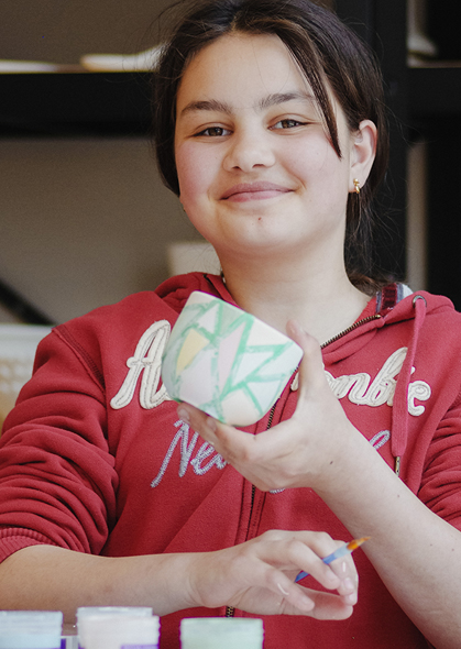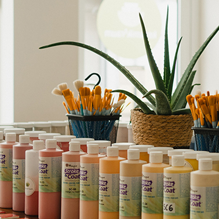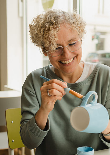 Dein Kopf ist voll, Bildschirmzeit und To-do-Liste mal wieder viel zu lang? Bei uns genießt Du Muße und erschaffst ein Unikat mit Deinen eigenen Händen. In lichten Räumen, mit Pinsel und Farbe, an gemütlichen Tischen und in Deinem Rhythmus. Und das Beste: Dein selbstbemaltes Keramikstück verschönert Dir auch zuhause Deinen Tag. Und erinnert Dich daran, die nächste Auszeit nicht zu lange zu verschieben. Wir freuen uns auf Dich. Schau Dich hier ruhig schon mal um.