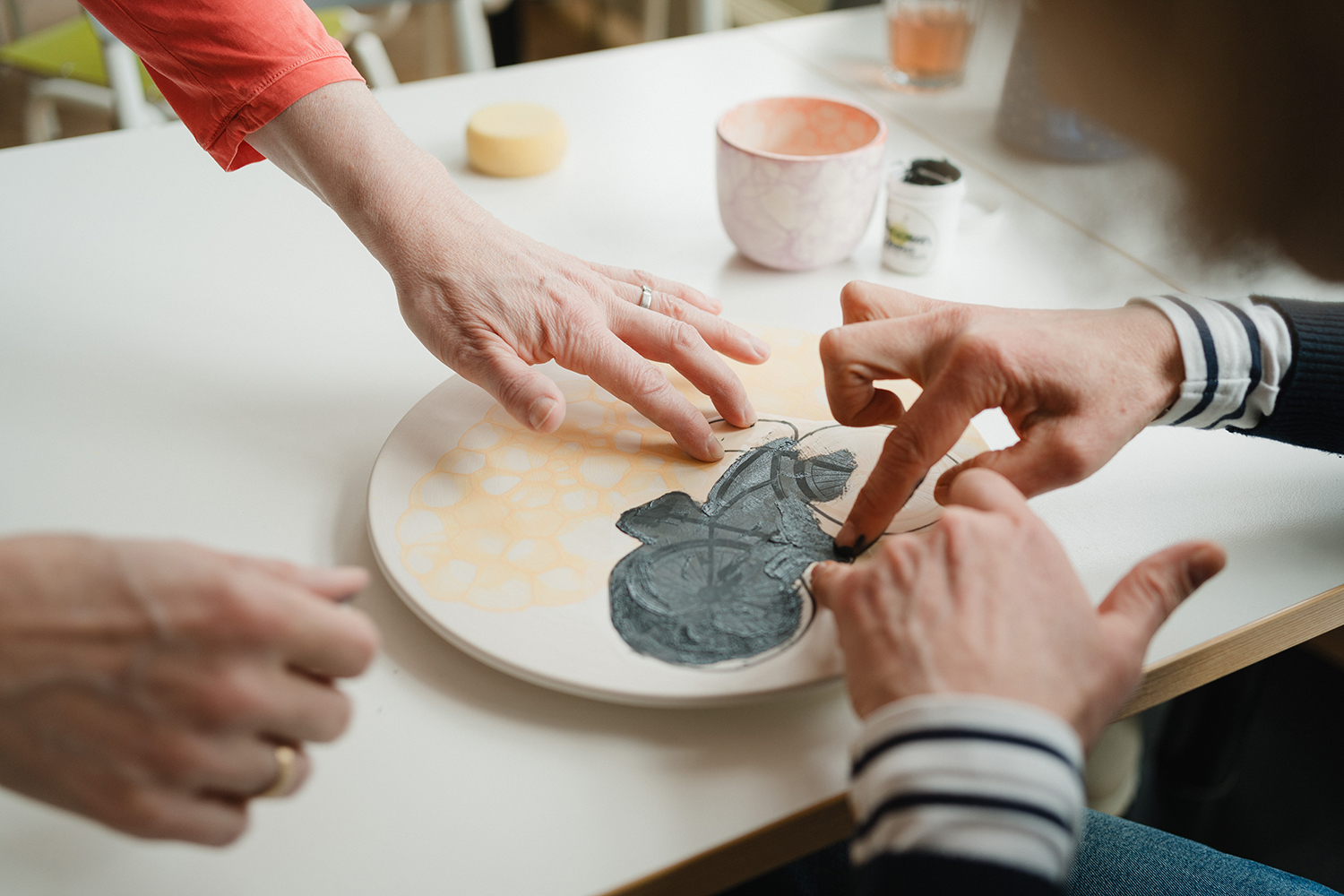 Bei uns kannst Du Dich ganz auf Dich und Deine Kreation konzentrieren. Genau so gut lässt es sich im keramiktraum natürlich im Freundes-, Familien- oder Kollegenkreis malen, gemeinsamer Kaffee oder Tee eingeschlossen. Und wenn Du Spaß daran hast, in der Gruppe neue Maltechniken kennenzulernen, empfehlen wir Dir unsere regelmäßig stattfindenden Workshops. Achte auf unsere SPECIAL Hinweise hier auf der Homepage